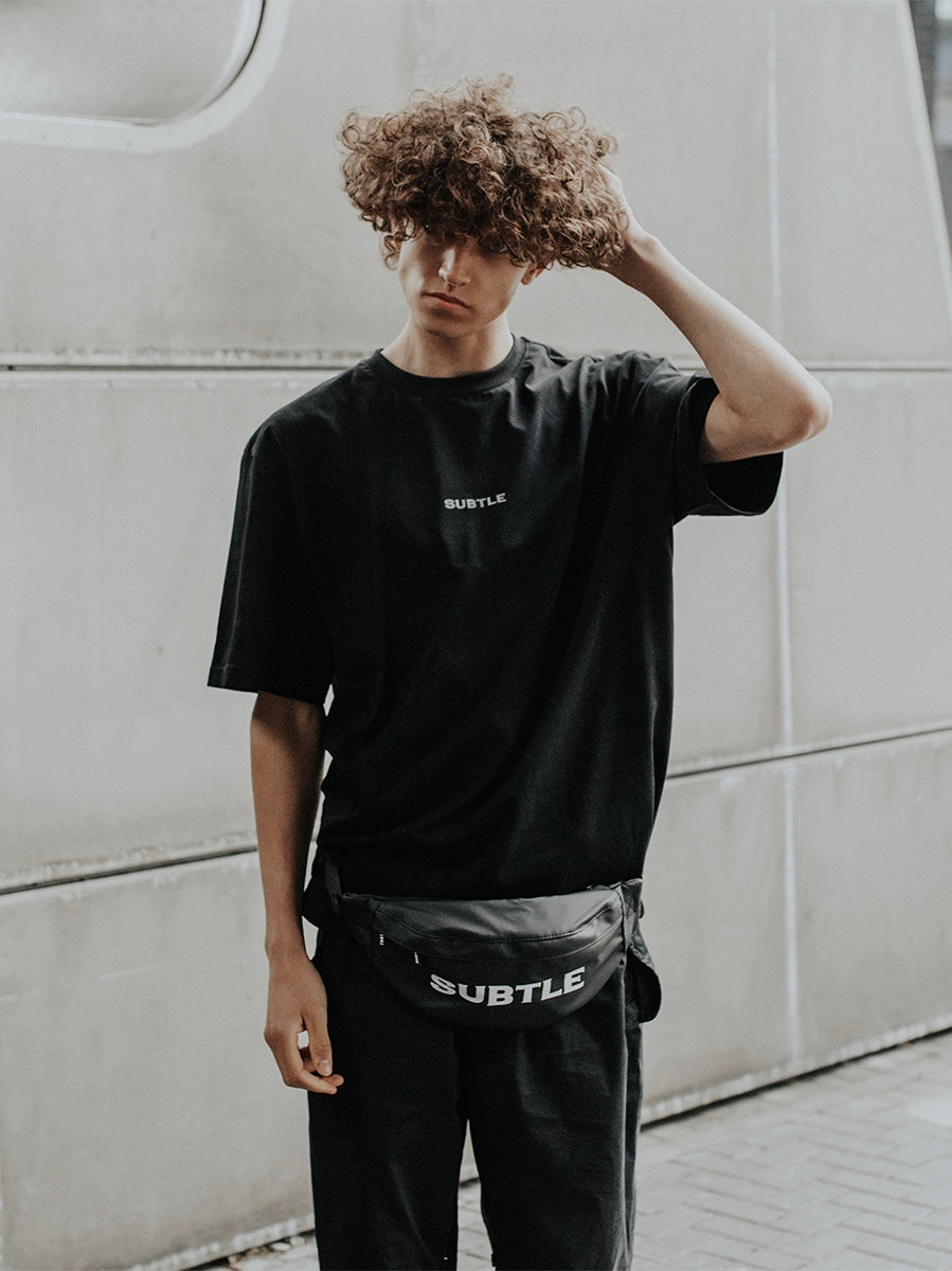 The design is inspired by the classic and practical messenger bag shape, and is made with SUBTLE's unique LOGO silk screen printing. It has a large capacity to meet daily storage needs, and the simple style is neat and versatile. The 100% polyester material is soft and comfortable. The minimalist black and white combines practicality and fashion, and the bright green highlights the essence of youth. Lightweight streetwear equipment for a great summer.