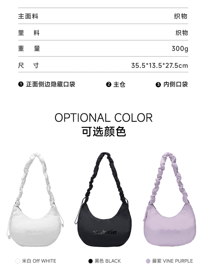 Guided by "flowing clouds", we recast the symbiotic bond between humans and space. "SUBTLE never confines shapes; we merely craft freedom." Drawing inspiration from "the untamable nature of clouds", the Fuyun Series, via design, disassembles the boundary between nature and technology. It elevates bags from mere functional receptacles to "wearable philosophical emblems". What they hold is not just objects, but also contemporary youths' rebellion against conventions and their longing for a carefree life.