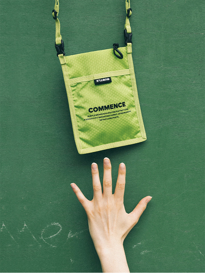 The light and close-fitting messenger bag is designed for storing daily miscellaneous items. Two nylon straps of different widths are connected by a D-buckle. The wide shoulder strap shares the load, and the thin strap adjusts the length. The combination of the two can bring users a more comfortable carrying experience. The surface of the bag is made of grid-like nylon cloth to present a unique visual effect, and the color matching design provides an eye-catching highlight for the overall appearance.